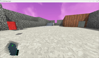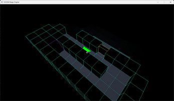Levels are defined in a layered data format (.mgl) and converted into voxel geometry at load time. Each cell can be a solid wall, a ramp, a diagonal wall, or empty space — and that geometry drives both rendering and collision. Lighting uses a two-pass approach: