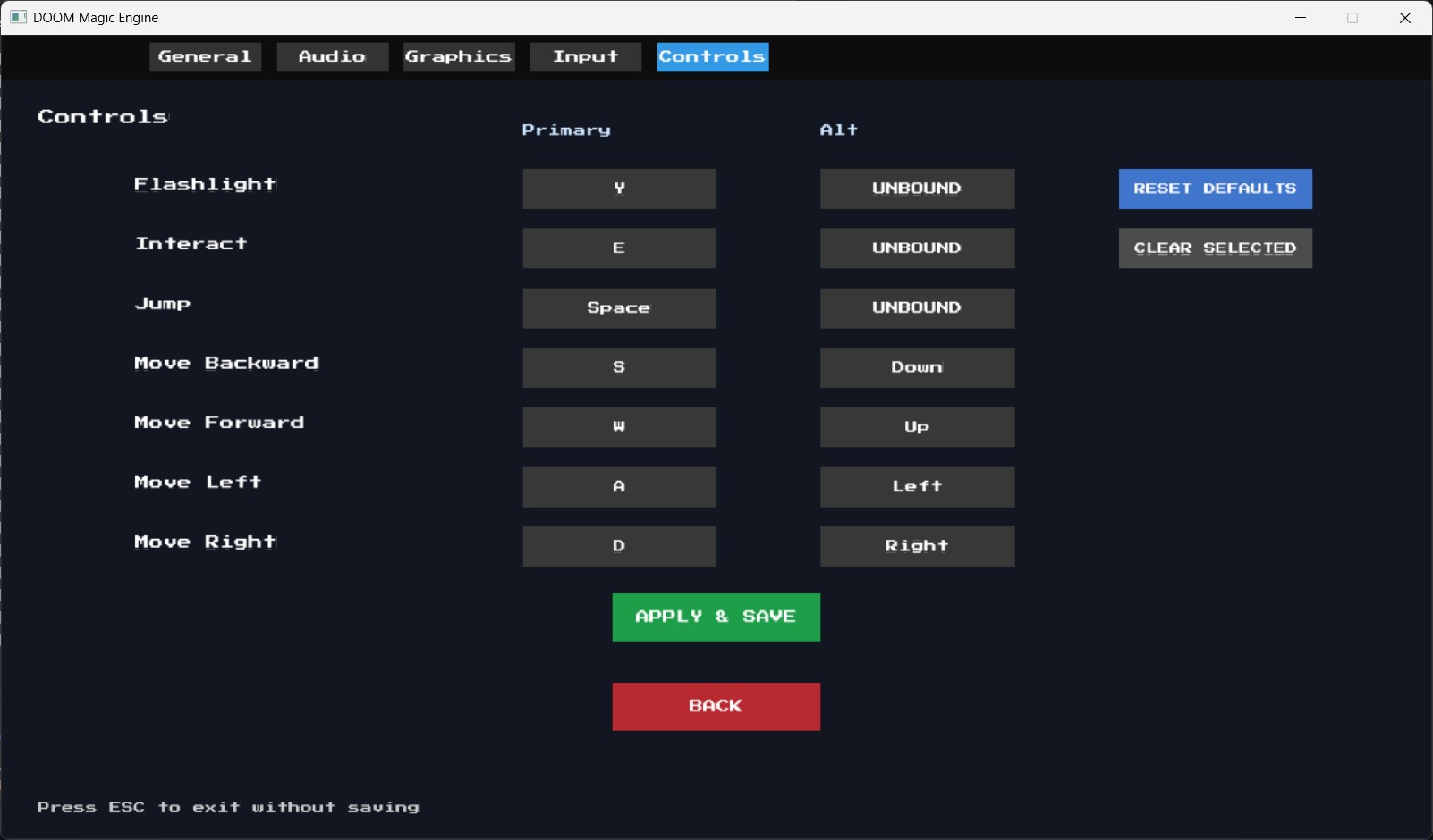 - Pause / Menu: Escape